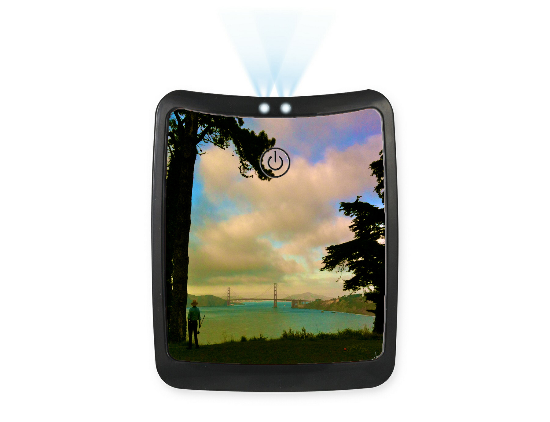 2 LED Bibs 2 Replaceable Lithium Batteries Button cell CR2016 - accessed via black screws Momentary Press On/Release On Switch Black Split Ring. 3" W x 3.5" H x .375" D Full Color Imprint