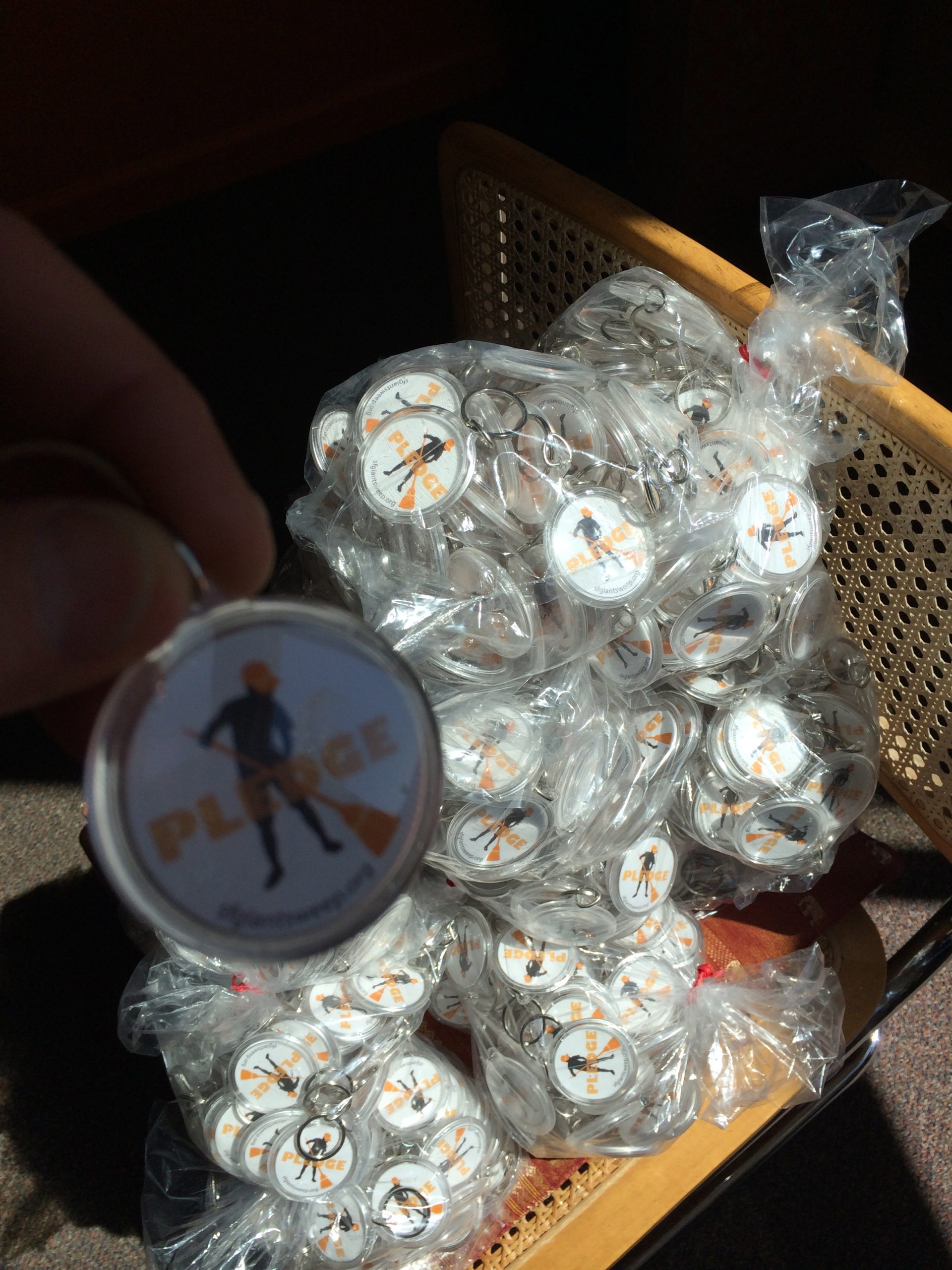 SF Giant Sweep Key Tag, 1.5" Circle Acrylic Key Tag, is given to volunteers keeping San Francisco neighborhoods beautiful by the San Francisco Giants and San Francisco Public Works.