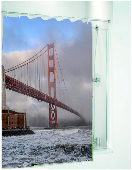 Shower and feel the power of the foggy Pacific tides and winds rushing beneath and above the Golden Gate Bridge.